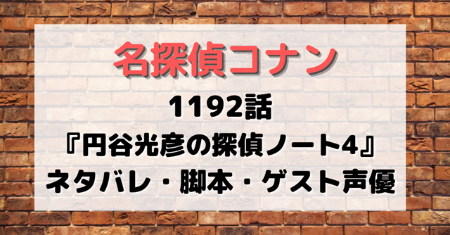 2026年3月7日放送の名探偵コナン第1192話『円谷光彦の探偵ノート4』の脚本やゲスト声優は誰?ネタバレや考察・感想はこちら。